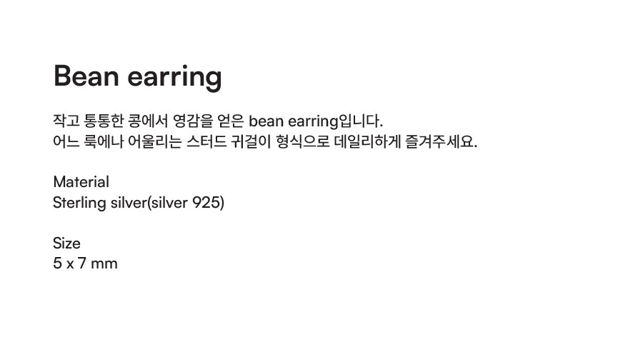 작고 통통한 콩에서 영감을 얻은 bean earring입니다.