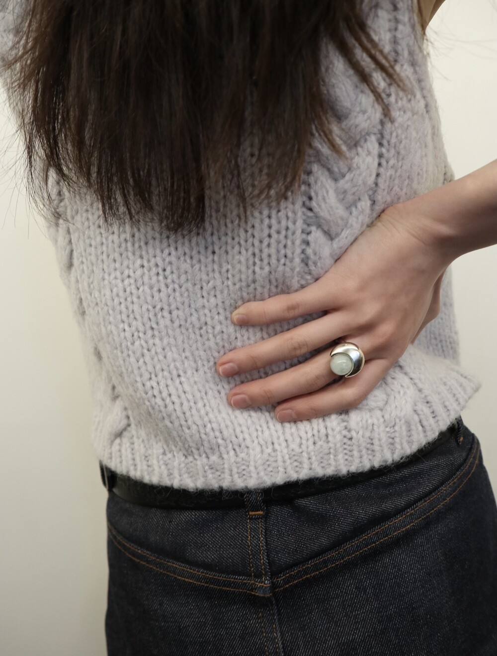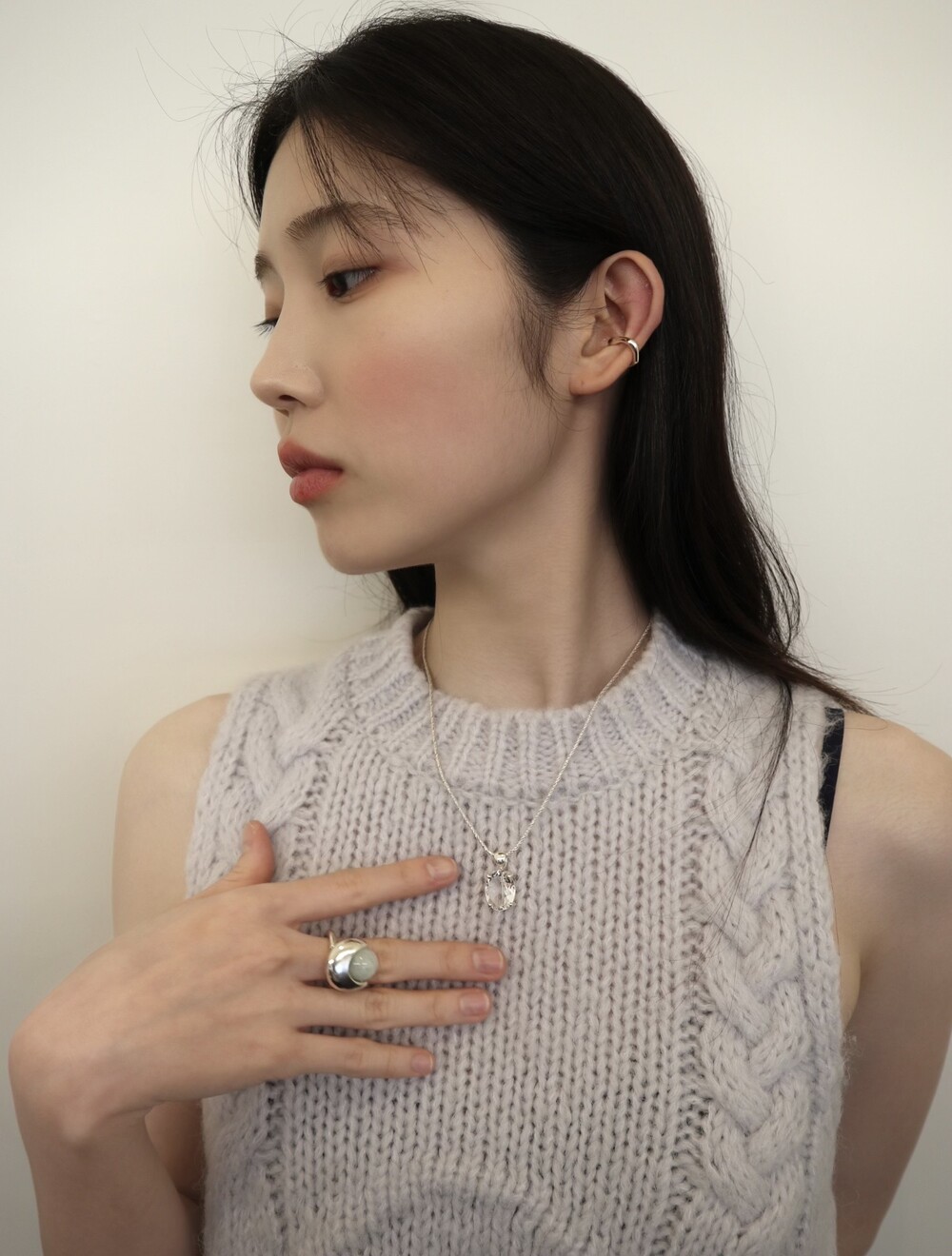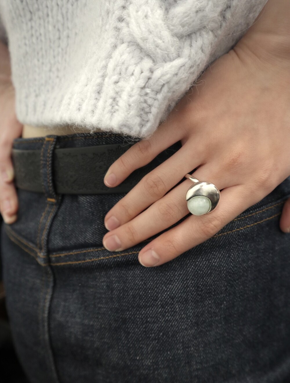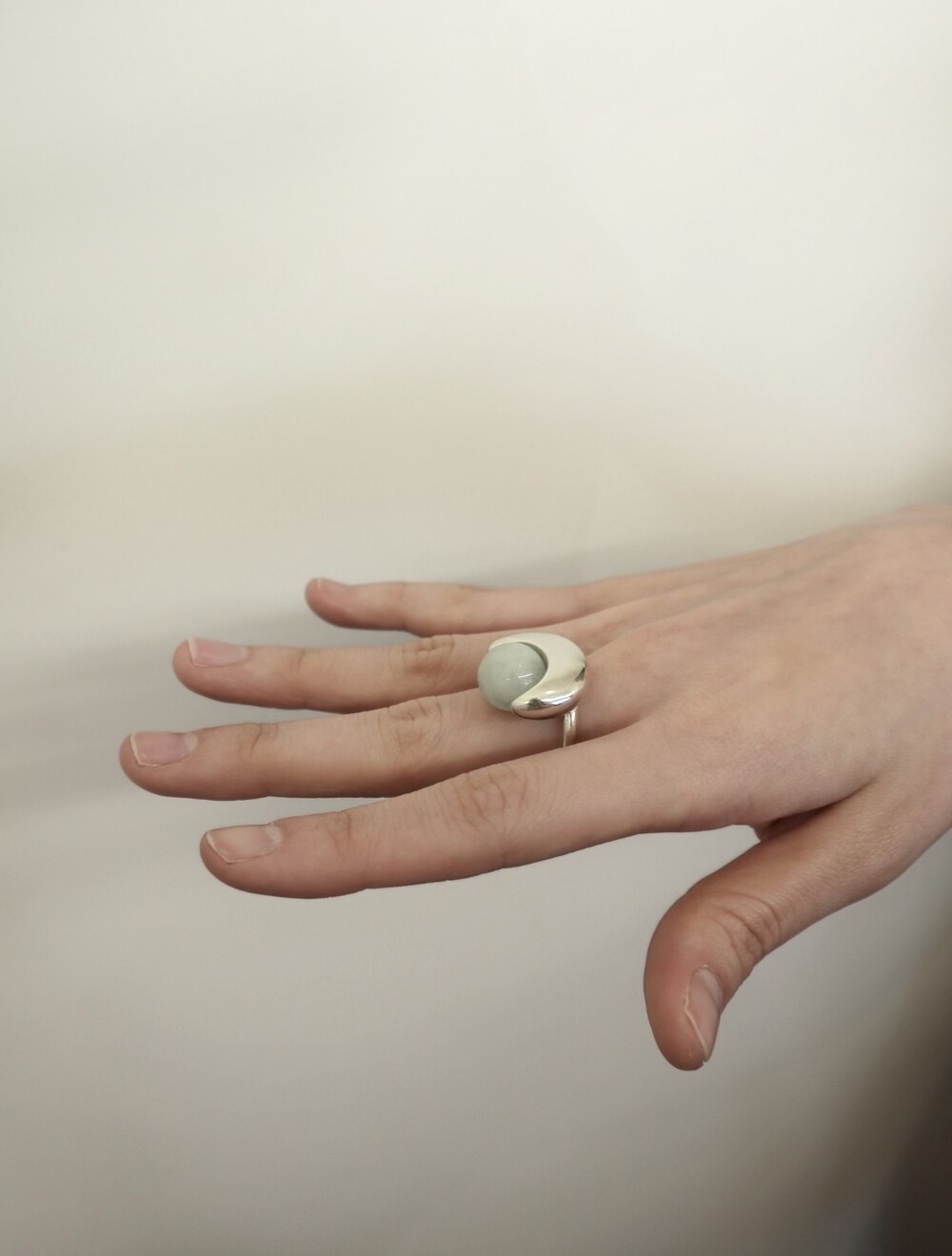 자유롭게 굴러가는 은은한 민트빛의 천연 원석 아쿠아마린을 감싸고 있는 초승달을 경험해 보세요.