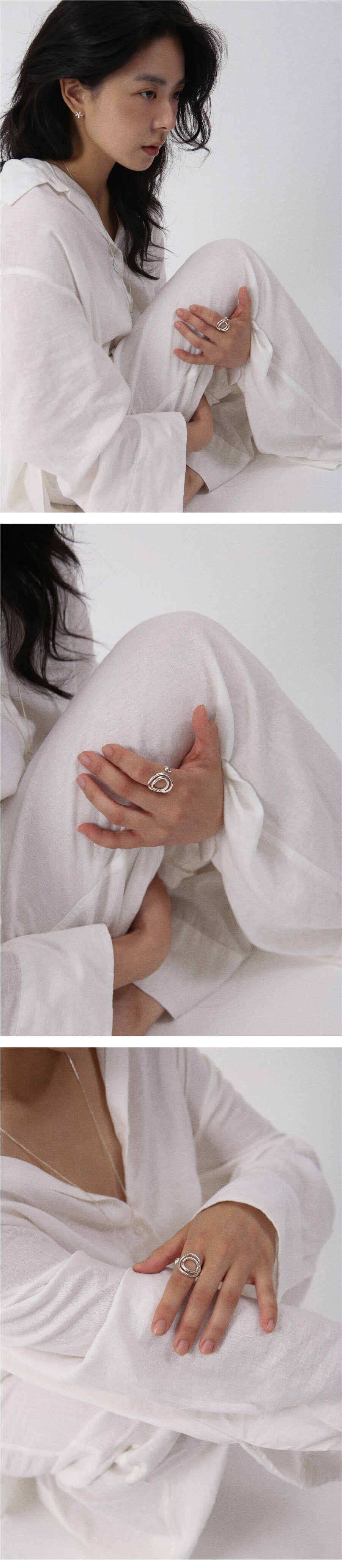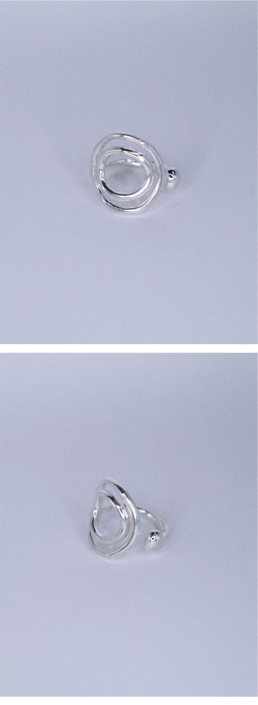 비대칭 조형 속에서 은근한 균형감과 빈티지한 우아함을 품은 반지입니다.