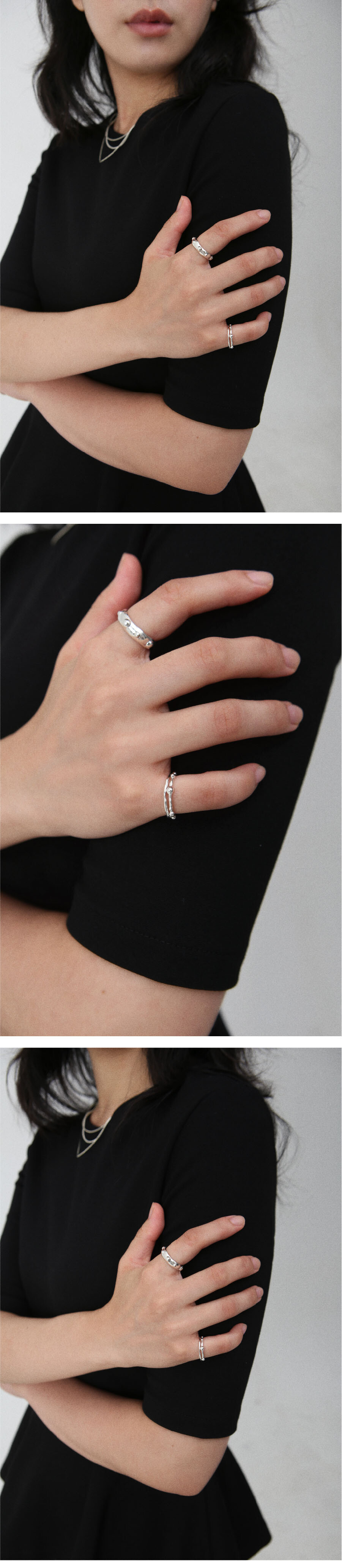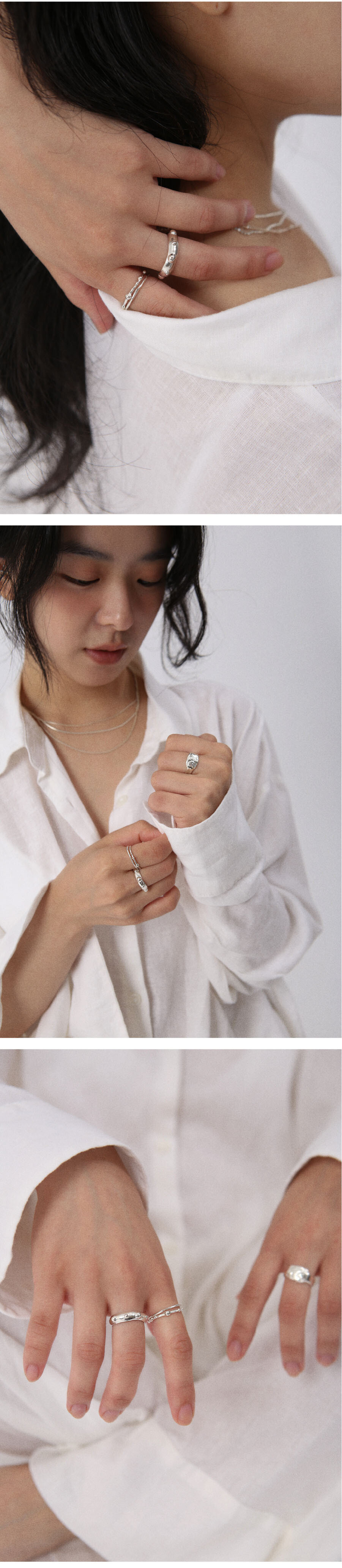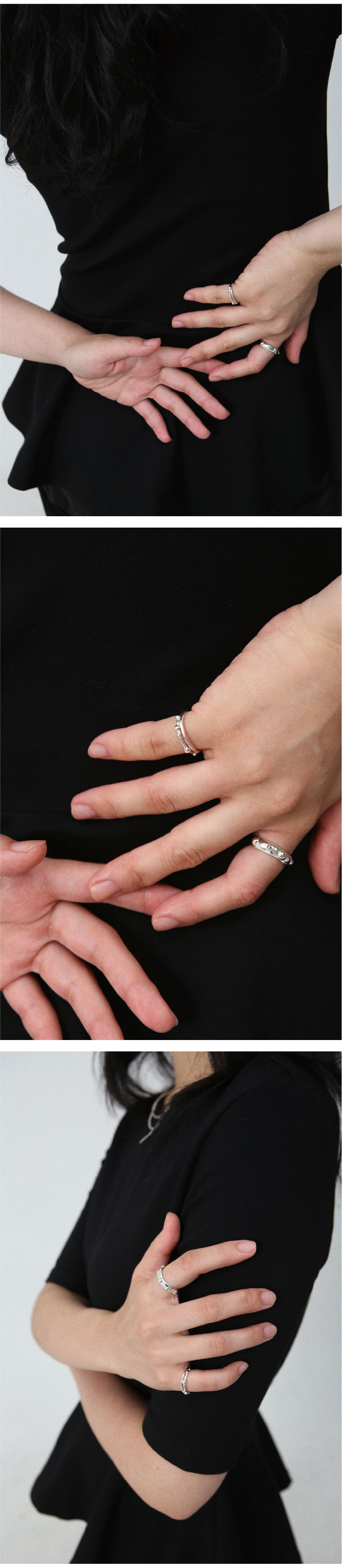 자연스러운 굴곡이 더해진 실반지와, 입체 원들이 흩어져 우아한 리듬을 만드는 반지.