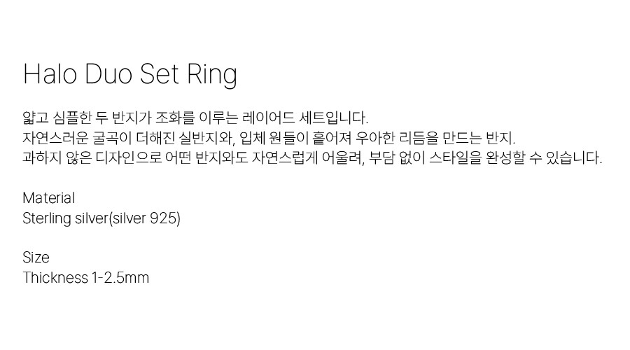 얇고 심플한 두 반지가 조화를 이루는 레이어드 세트입니다.
