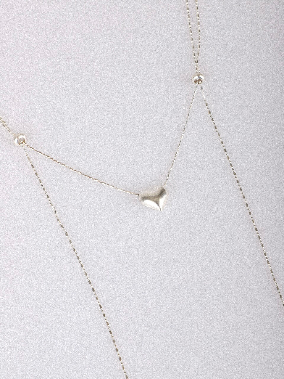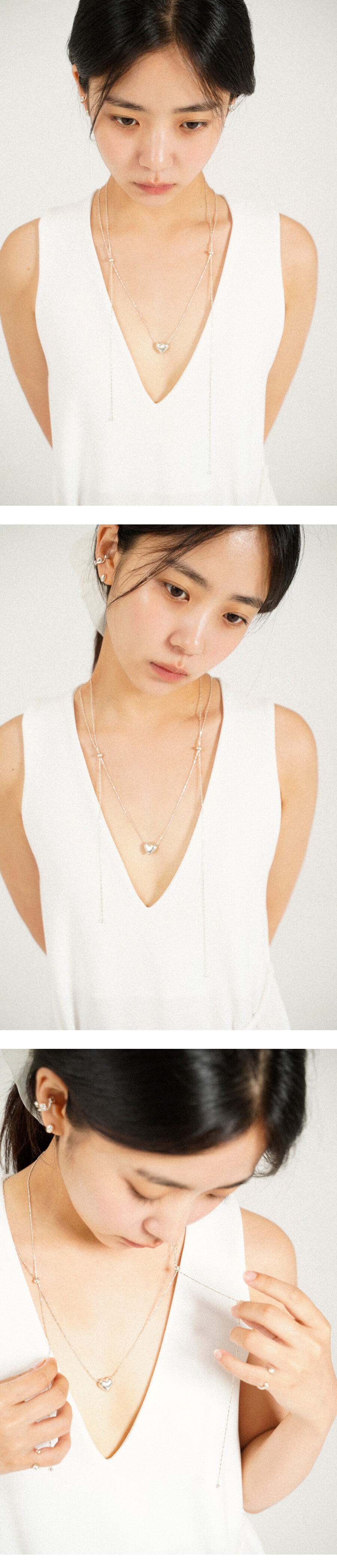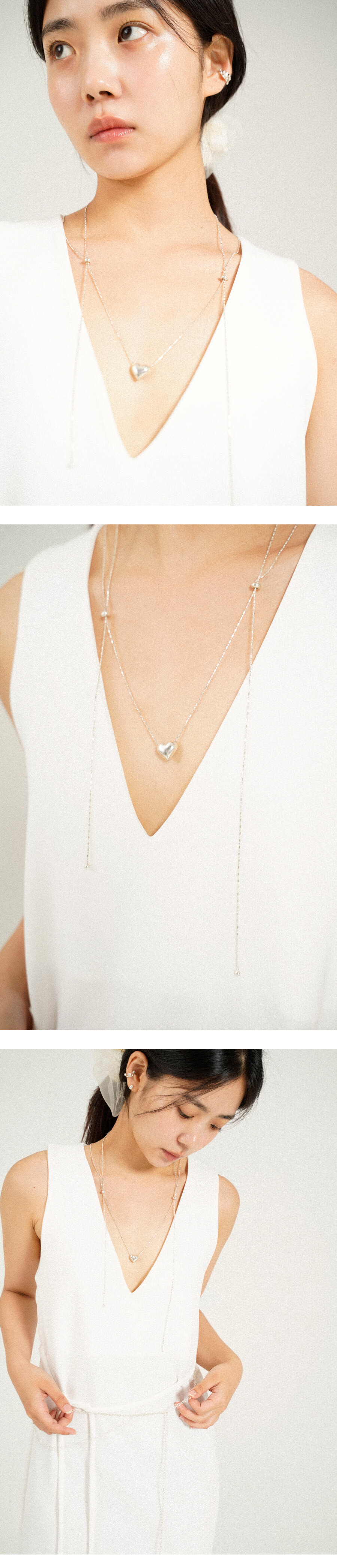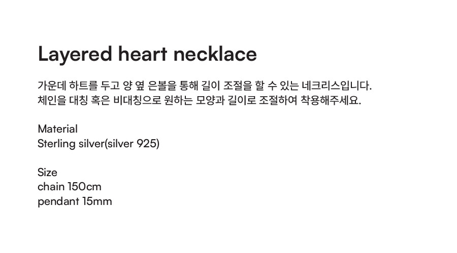 가운데 하트를 두고 양 옆 은볼을 통해 길이 조절을 할 수 있는 네크리스입니다.