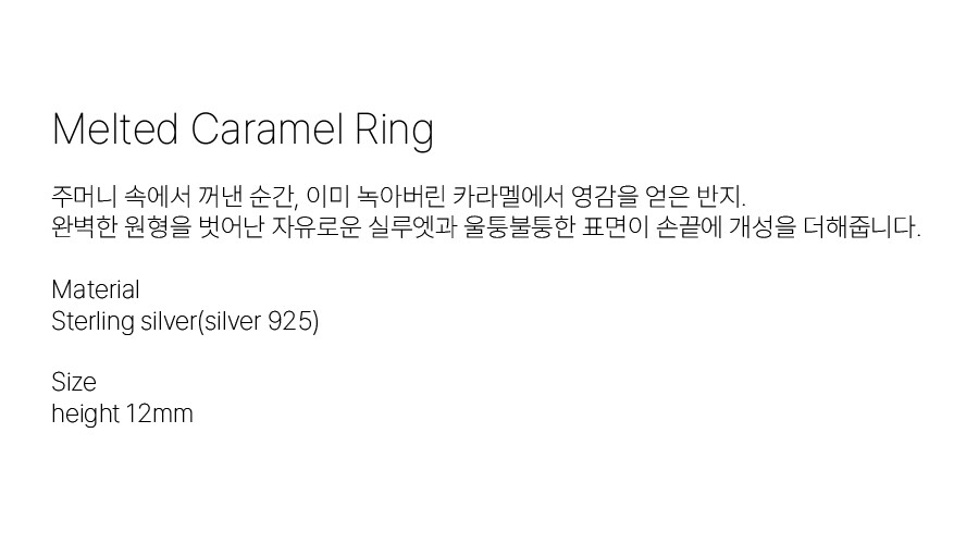 주머니 속에서 꺼낸 순간, 이미 녹아버린 카라멜에서 영감을 얻은 반지.