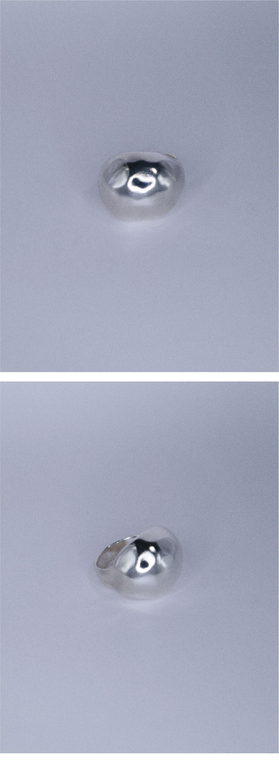 완벽한 원형을 벗어난 자유로운 실루엣과 울퉁불퉁한 표면이 손끝에 개성을 더해줍니다.