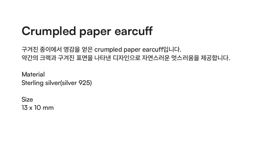 구겨진 종이에서 영감을 얻은 crumpled paper earcuff입니다.