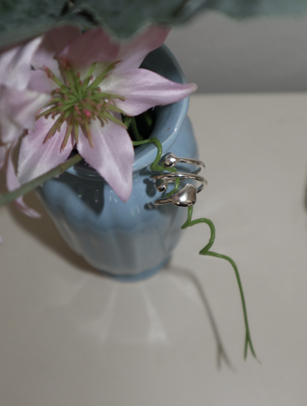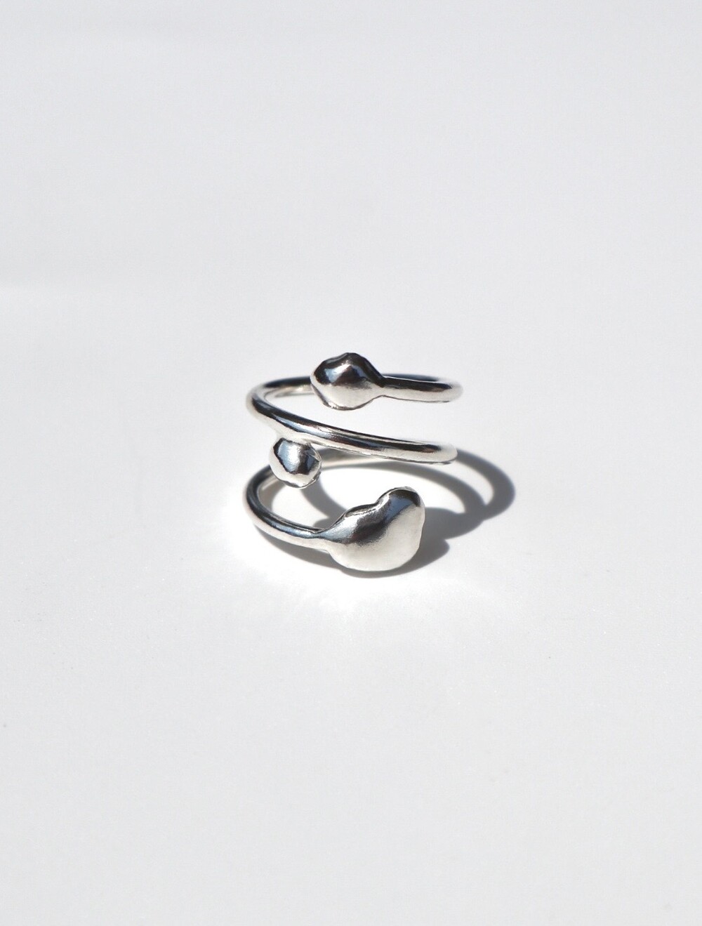 곡선을 따라 열매처럼 맺힌 조약돌이 특징인 반지.