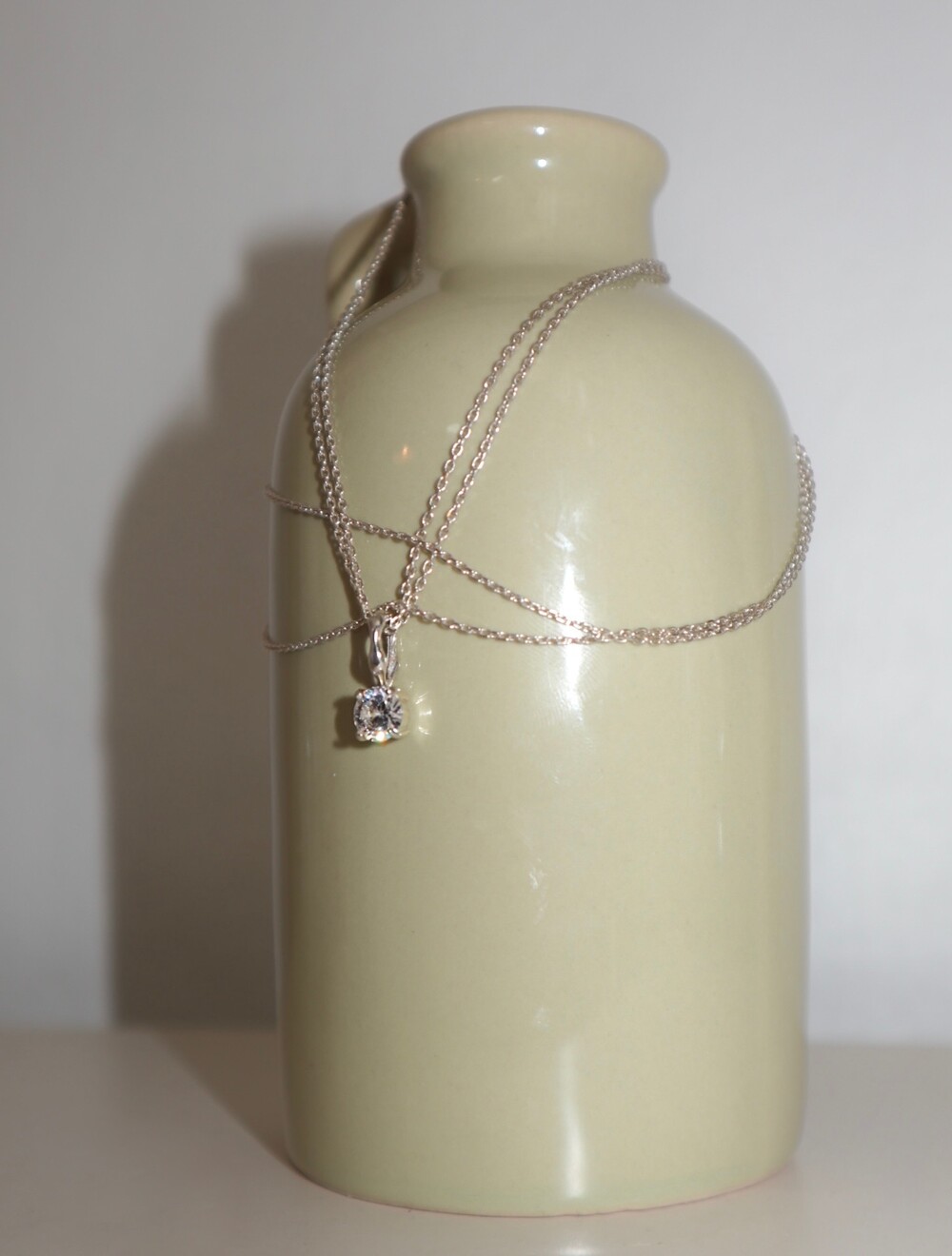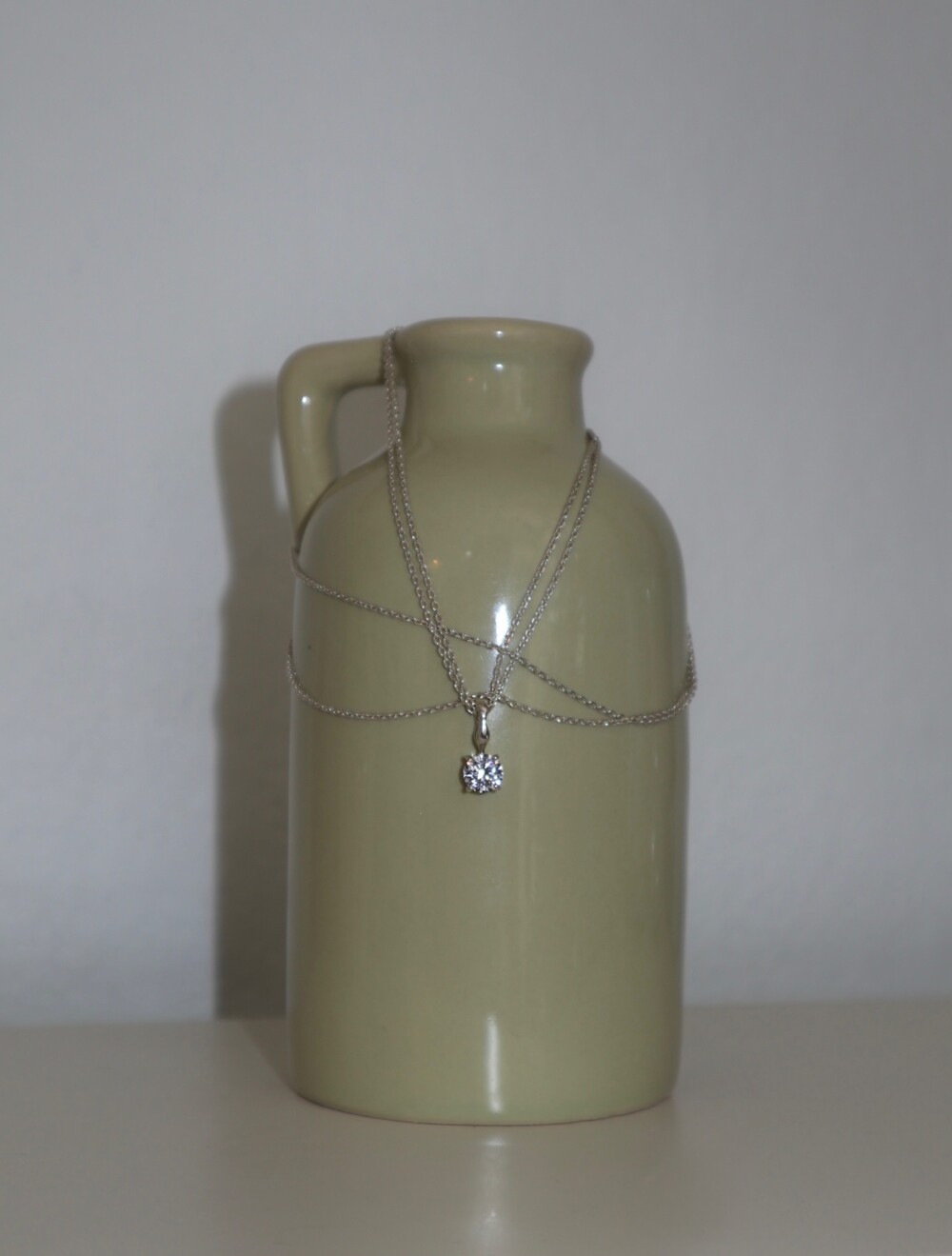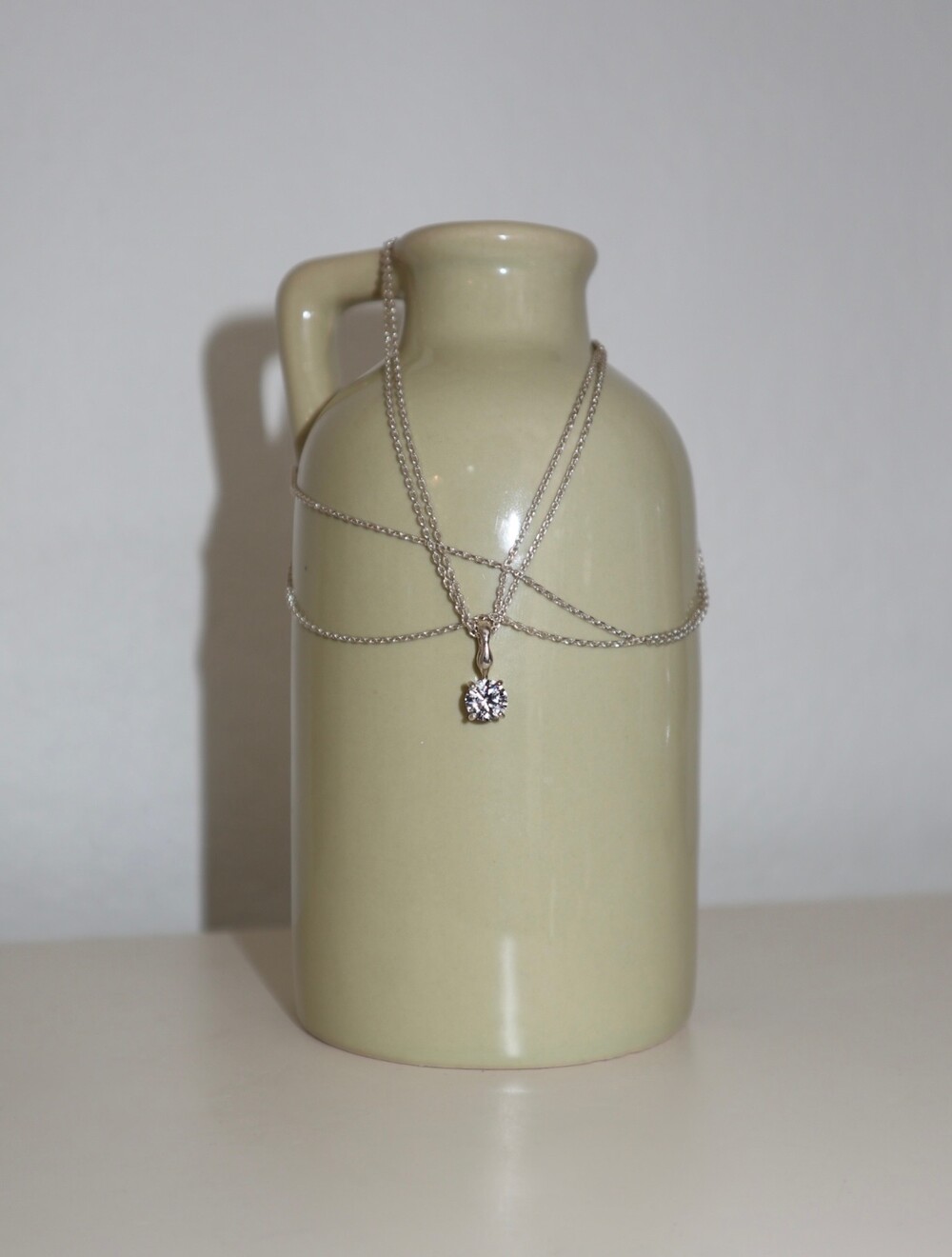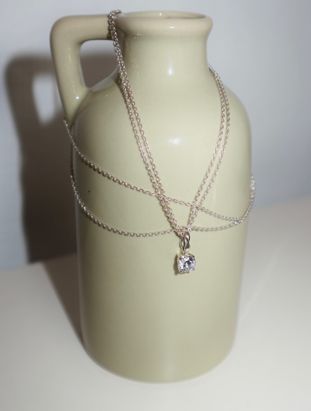 더블 체인과 비정형적인 팬던트 고리가 인상적인 큐빅 네크리스입니다.