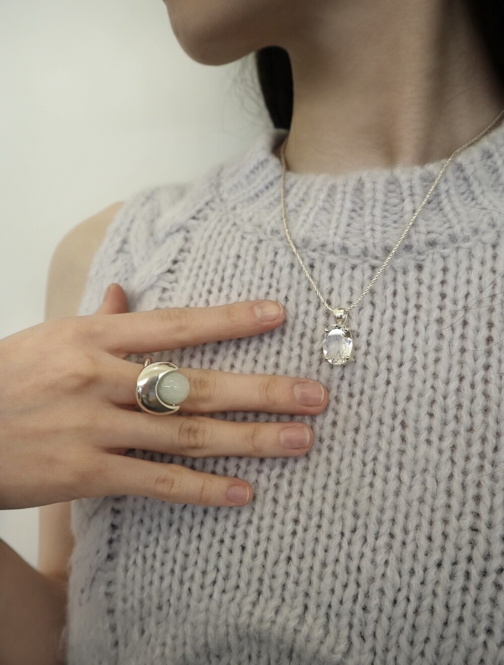 작지 않은 크기의 원석과 빈티지한 무드의 체인의 조합이 유니크한 우아함을 선물해 줍니다.